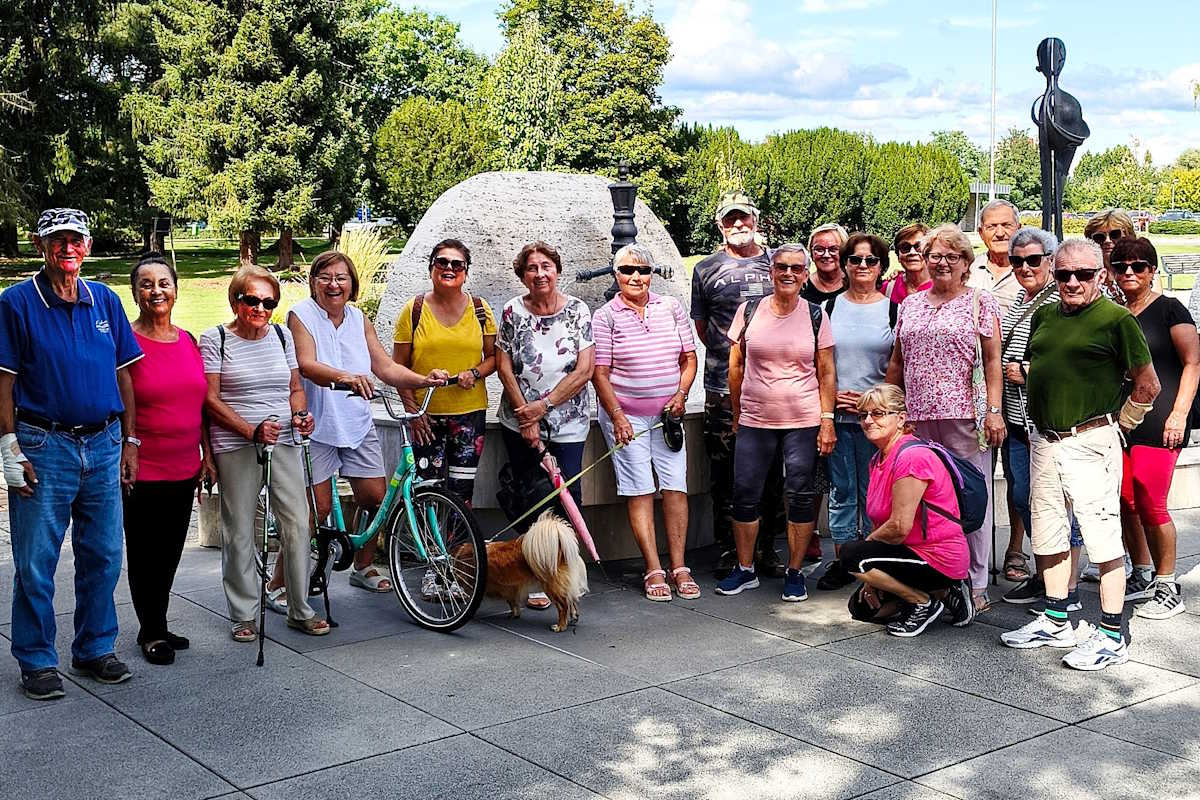 Foto: Igor Svítok |  Aj v takomto počte sa zúčastňujú členovia ZO JDS Dudince turistických vychádzok blízkym a vzdialenejším okolím. Tento raz ich takto zväčnil fotoaparátom po Batôžkovom chodeckom rituáli ich člen Igor Svitok. Na snímke druhá zľava bývala dlhoročná predsedníčka ZO JDS Dudince Ing, Anna Zekuciová.